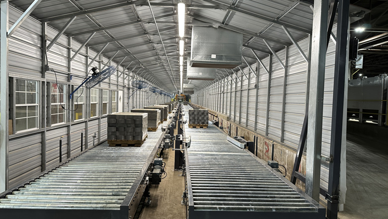Závod v Alabamě vyrábí magneziovo-uhlíkové cihly. Komplexní automatizovaný systém MSK zde začíná již v chladicí zóně, kde válečkové dopravníky automaticky vedou palety skrze chladící tunel.