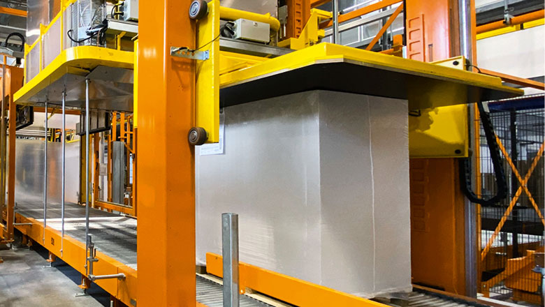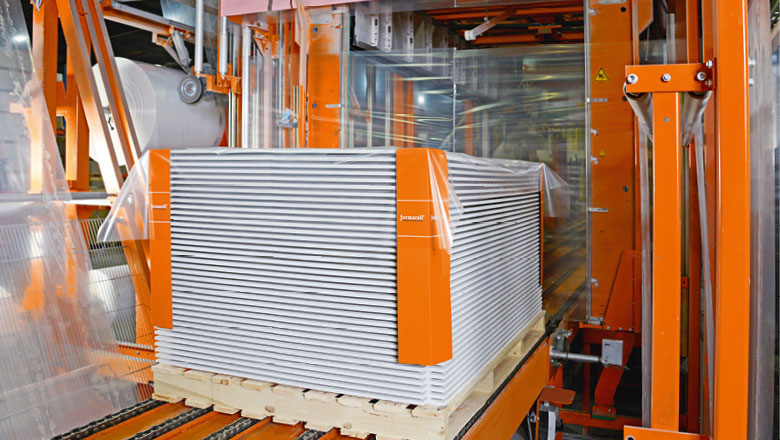 Produkty jako izolační panely, desky z pěnové izolace nebo betonové potěrové desky vyžadují mimořádně flexibilní balicí systém vzhledem ke své hmotnosti a proměnlivým rozměrům. Smršťovací balení se v tomto kontextu často ukazuje jako nejefektivnější řešení, protože běžné stretch technologie nejsou dostupné v požadovaném rozsahu formátů a neposkytují dostatečnou ochranu proti vlhkosti. Balicí stroj MSK Flowtech s integrovaným smršťovacím portálem je speciálně navržen pro velkoformátové produkty až do délky cca 5 000 mm.