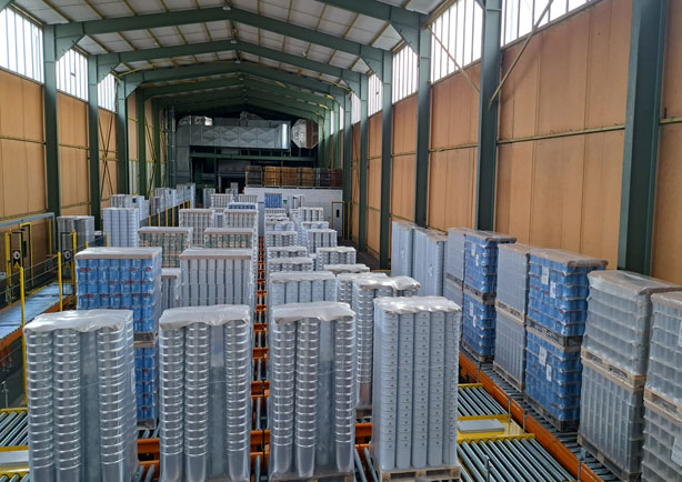 Pallet conveyors and pallet handling from the production to the pallet storage warehouse