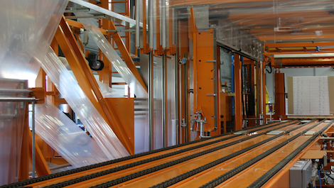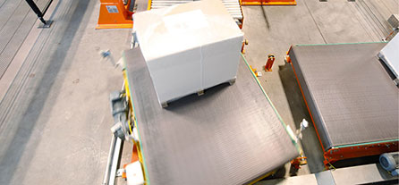 MSK conveyor systems also fully automatically feed empty pallets to the sheeter.
