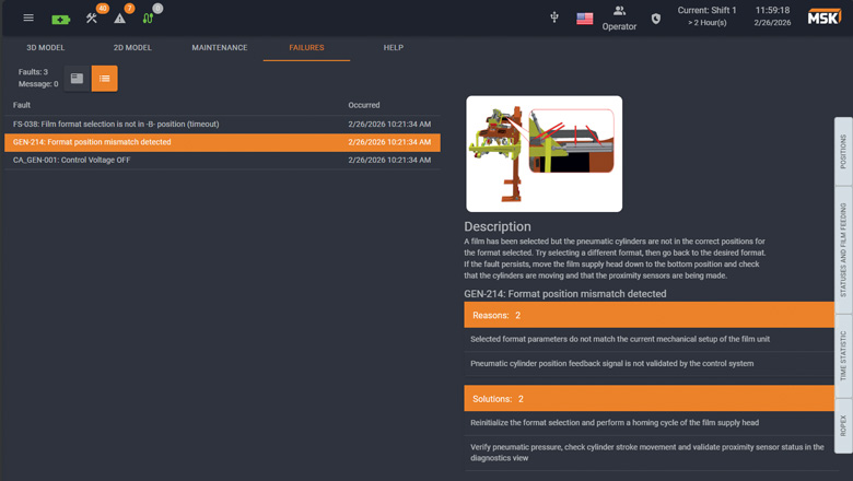 The software can be connected to other products of the MSK EMSY family, so comprehensive system analysis, mobile status monitoring, and mobility in operation can be made possible. Servicing and maintenance work are facilitated by the digital MSK service pad.