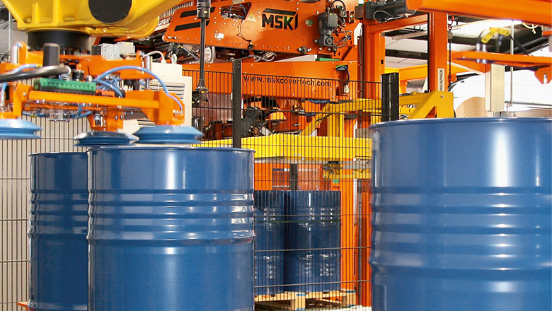 Thanks to their modular design, MSK palletizing systems can be easily adapted to different application needs. They can handle glass bottles of various sizes, cardboard boxes, bags, drums and many more. The same palletizing unit can be programmed to handle different product sizes during production changes.